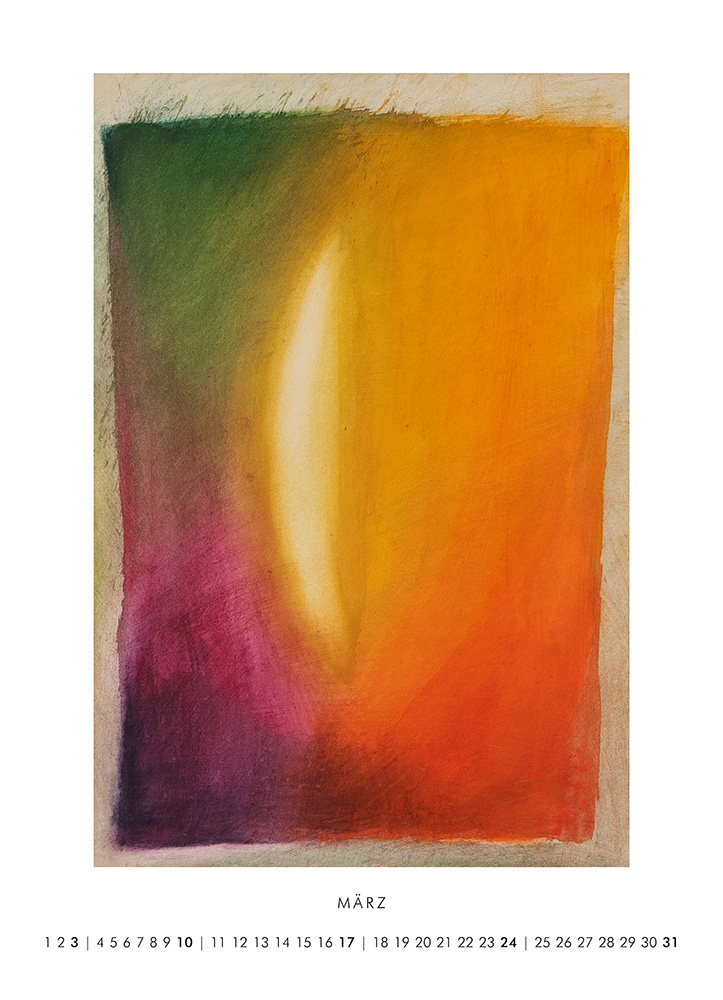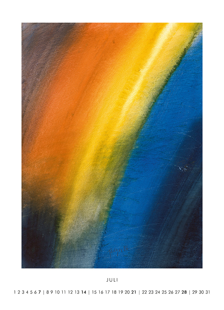 Kraftvoll treffen die leuchtenden Farben der neuen abstrakten Motive des Kalenders aufeinander. Ein Spiel aus Kontrasten, Formen und Farbverläufen begeistert den Betrachter. Die Vielfalt der Motive bekommt im großen Format eine Bühne und die intensiven Farben entfalten ihre spannende Wirkung.